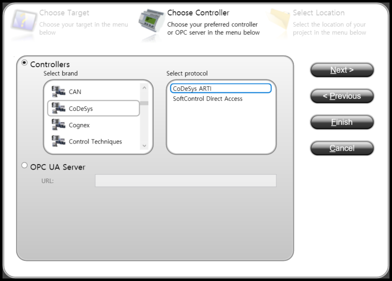 * SoftControl Direct Access : Codesys와 HMI가 일체형으로 된 제품에서 선택합니다.