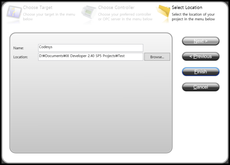 iX Developer를 실행하여 새 프로젝트를 생성하고 해당 HMI 기기를 선택합니다.