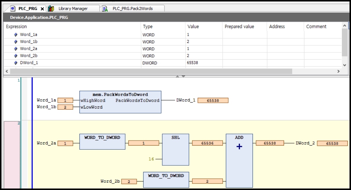 이를 위해 "Word_To_DWord" 연산자를 사용합니다.