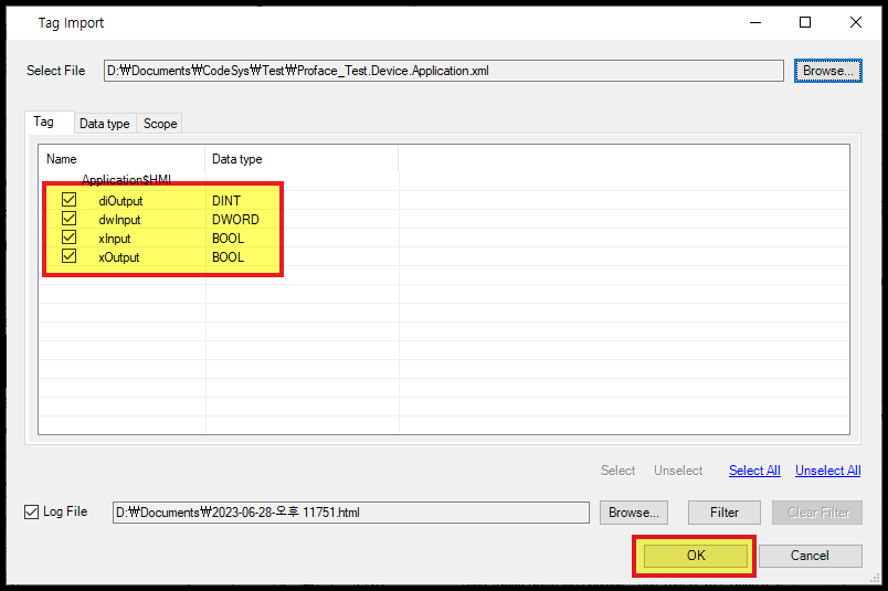 해당 xml 파일에 담겨있는 Codesys 변수가 나타납니다.