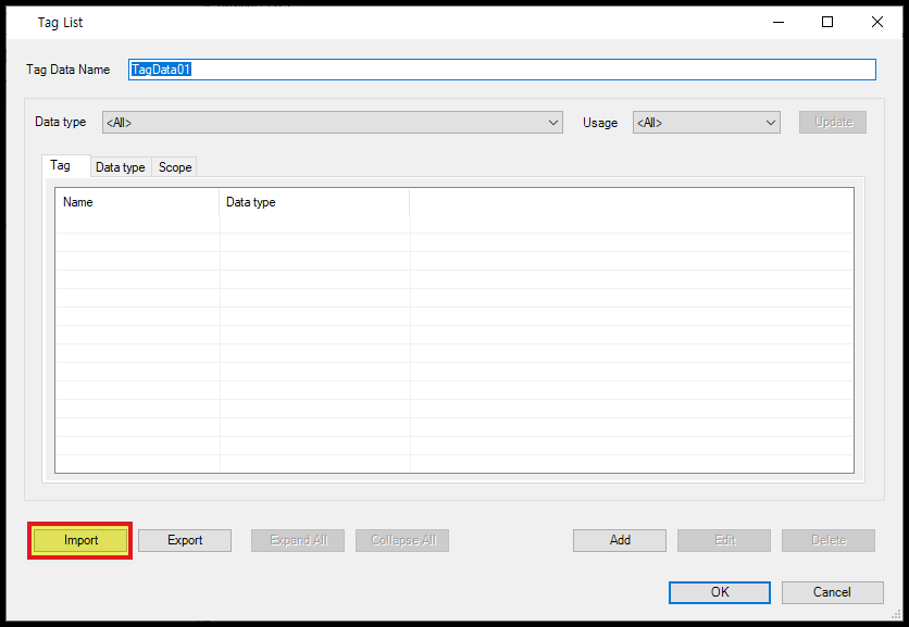Tag 이름을 설정해주고, 아래에 있는 [Import] 버튼을 클릭합니다.