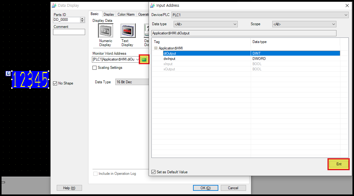 스위치를 동작시킬 Codesys 변수를 선택하고 [Ent] 버튼을 클릭하면, 해당 변수가 스위치에 할당됩니다.
