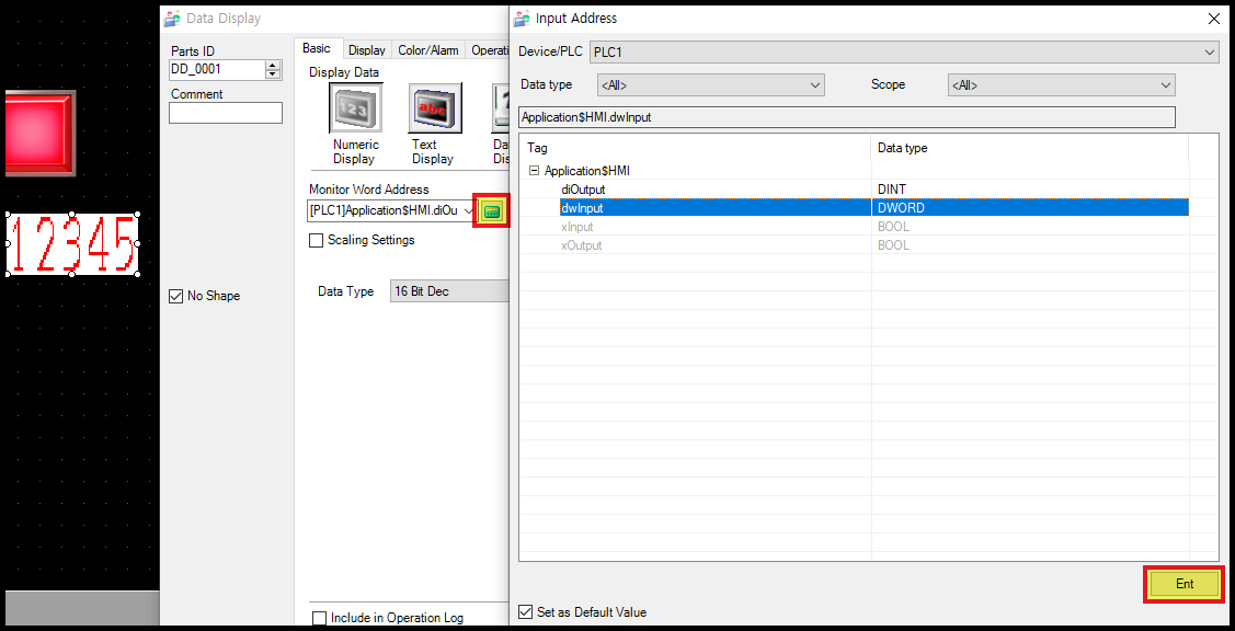 스위치를 동작시킬 Codesys 변수를 선택하고 [Ent] 버튼을 클릭하면, 해당 변수가 스위치에 할당됩니다.