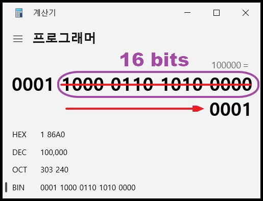 예를 들어 SHR(100000,16) 이라고 입력하면 16~31번 비트가 오른쪽으로 이동하게 되고, 원래 자리는 0으로 채워집니다.