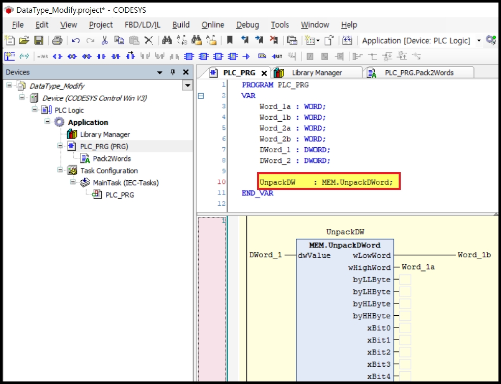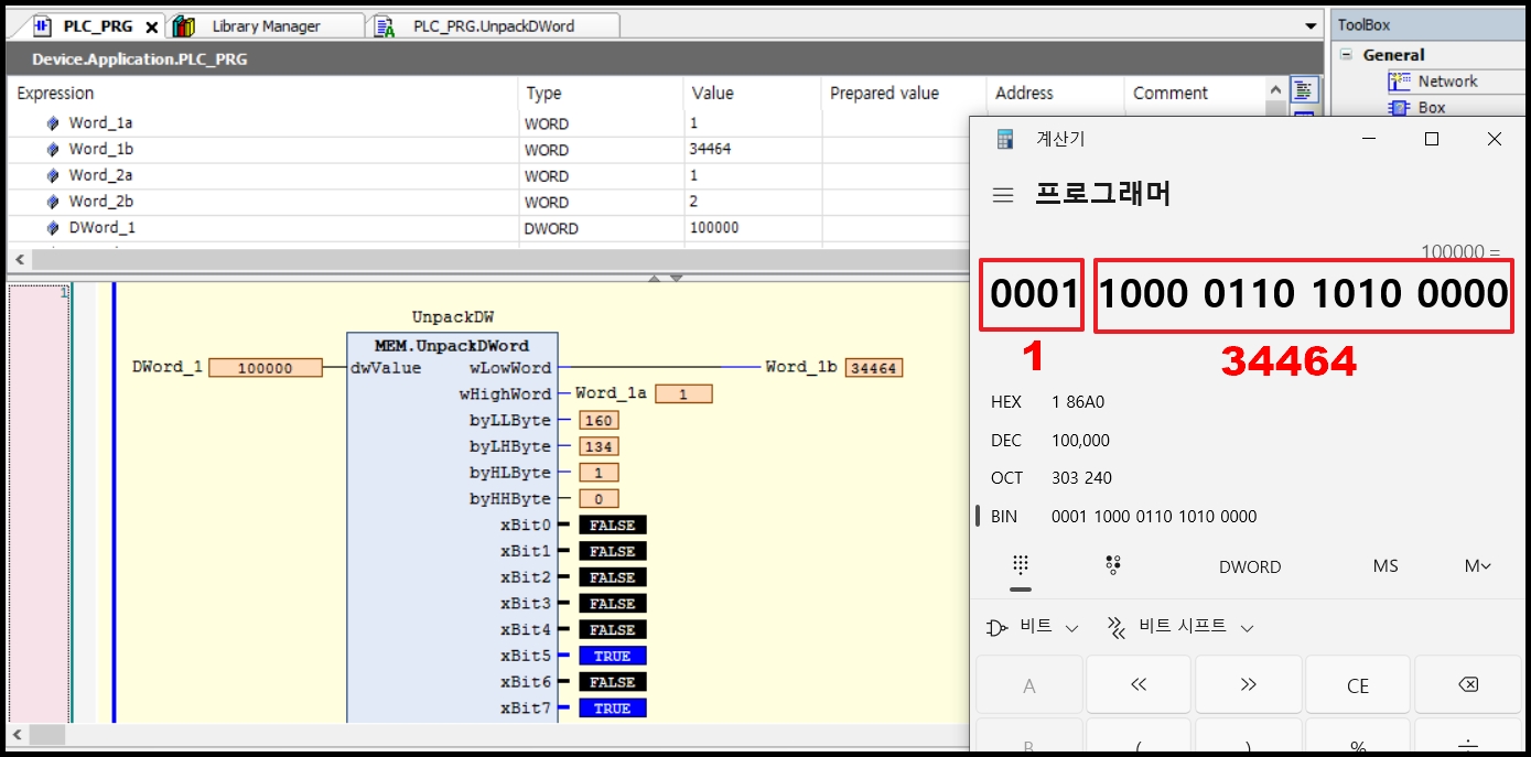 1. UnpackDword 펑션블록 사용하는 방법