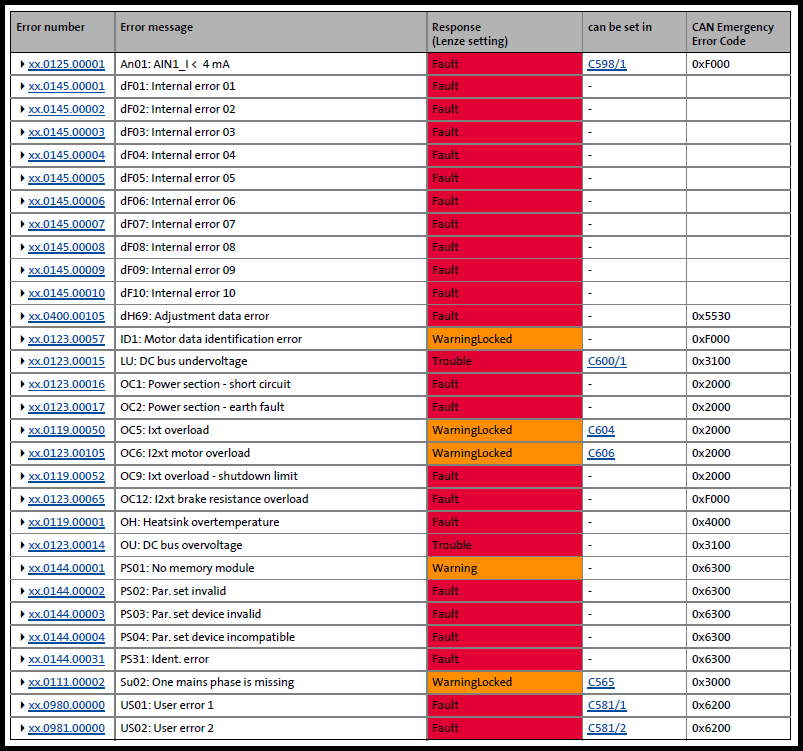 3. Lenze 8400 BaseLine ErrorCodes