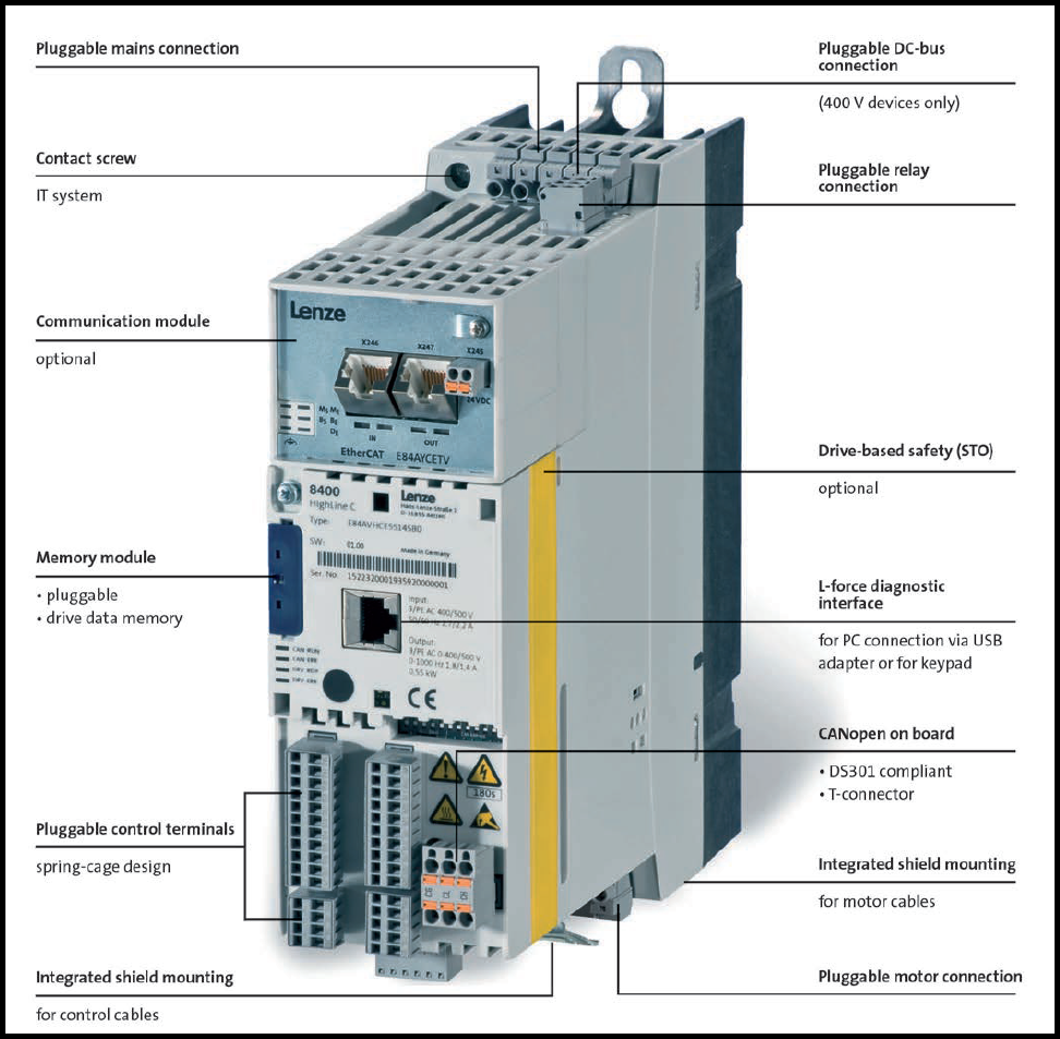 Lenze 8400 HighLine은 모델명 E84AVHC 로 시작하는 제품입니다.