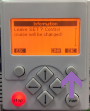 ④ 구동시작 : run 버튼 (Stop램프 꺼짐)
