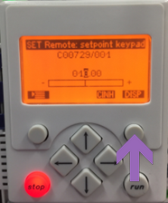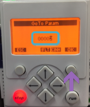 ① 파라미터를 키패드에 저장 : 왼쪽 [UP]