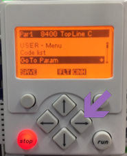 ① 메뉴 접근 : [→] 버튼 ② 파라미터 접근 : [→] [←] [↑] [↓]