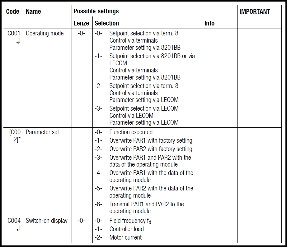 Lenze 8200 시리즈 파라미터 입니다. (모델명 : Lenze E82EV..., E821x, E822x, E823x)